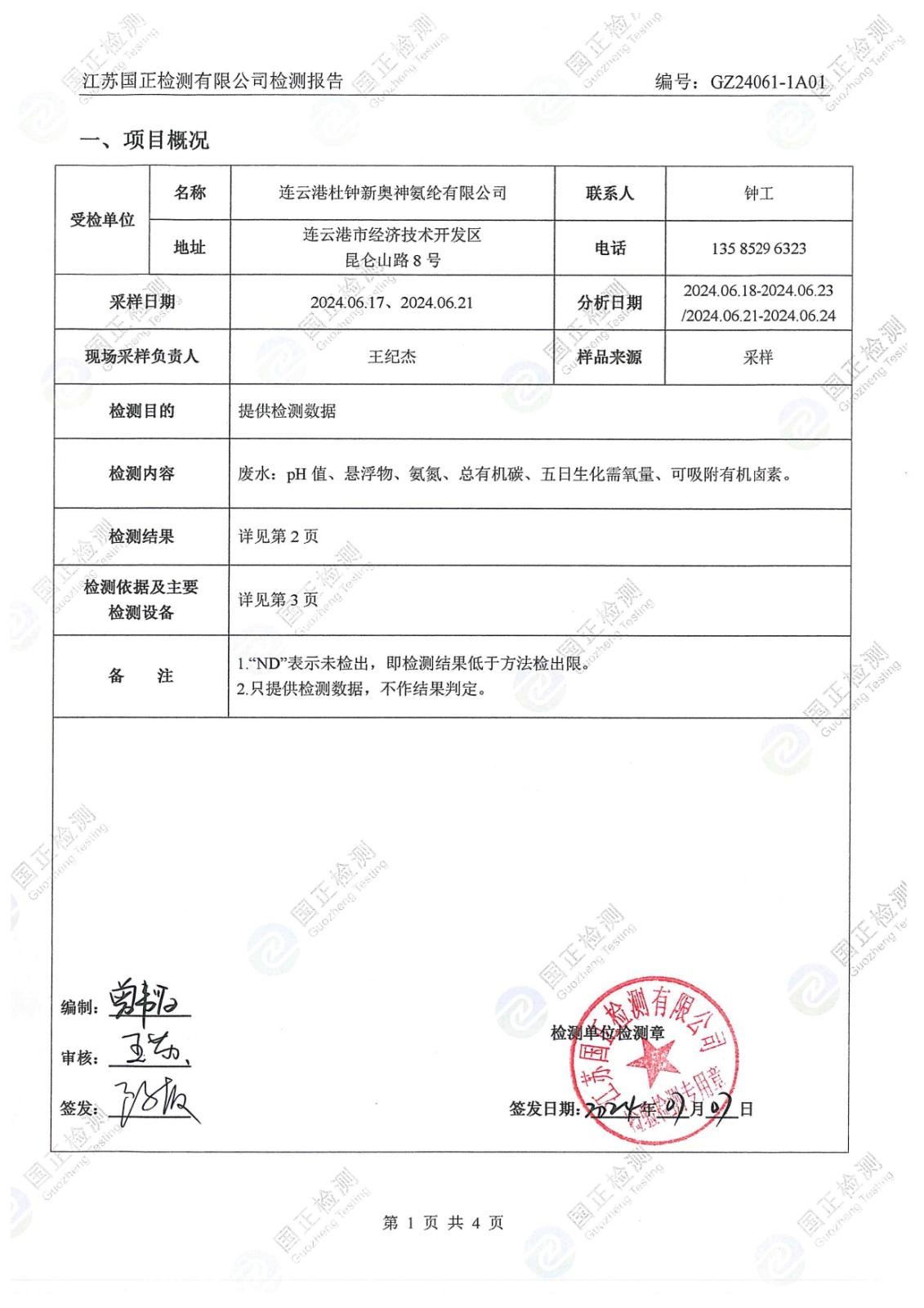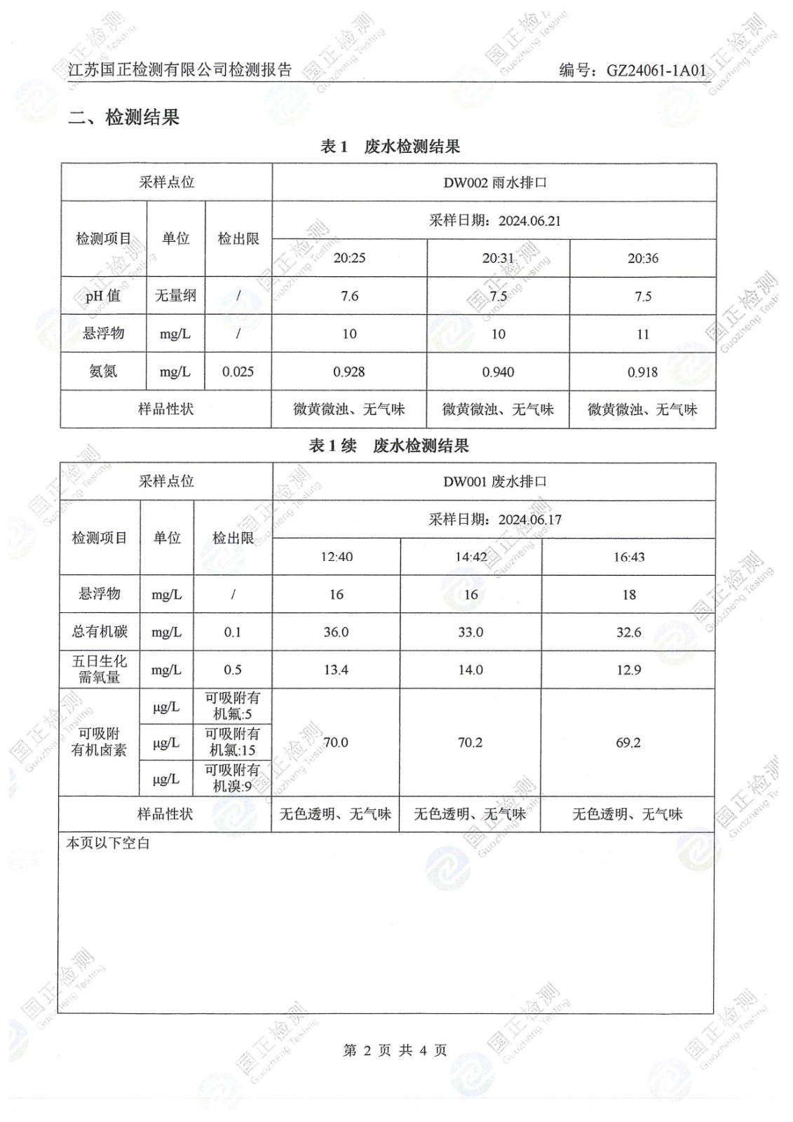 杜鐘氨綸2024年6月排污檢測(cè)報(bào)告