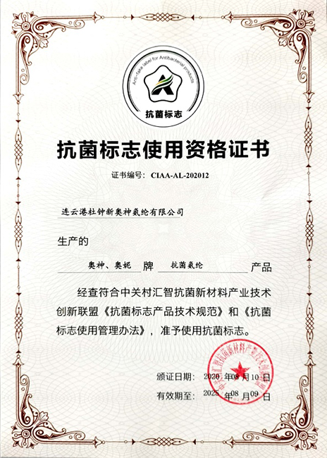 杜鐘氨綸作為CIAA會(huì)員,國(guó)內(nèi)唯一一家通過(guò)“抗菌標(biāo)志”認(rèn)證的氨綸供應(yīng)商,持續(xù)致力于疫情防護(hù),為推動(dòng)健康中國(guó)建設(shè),提高人民健康水平做貢獻(xiàn)。