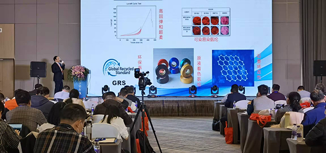 124日,由印染在線主辦的乘風破浪·智匯紡織第七屆(2020)國際功能性紡織品及提高紡織品附加值技術研討會在杭州舉行。公司總經理張斌帶隊參加了本次大會,并做了題為《健康功能性氨綸的開發(fā)和應用》的報告。