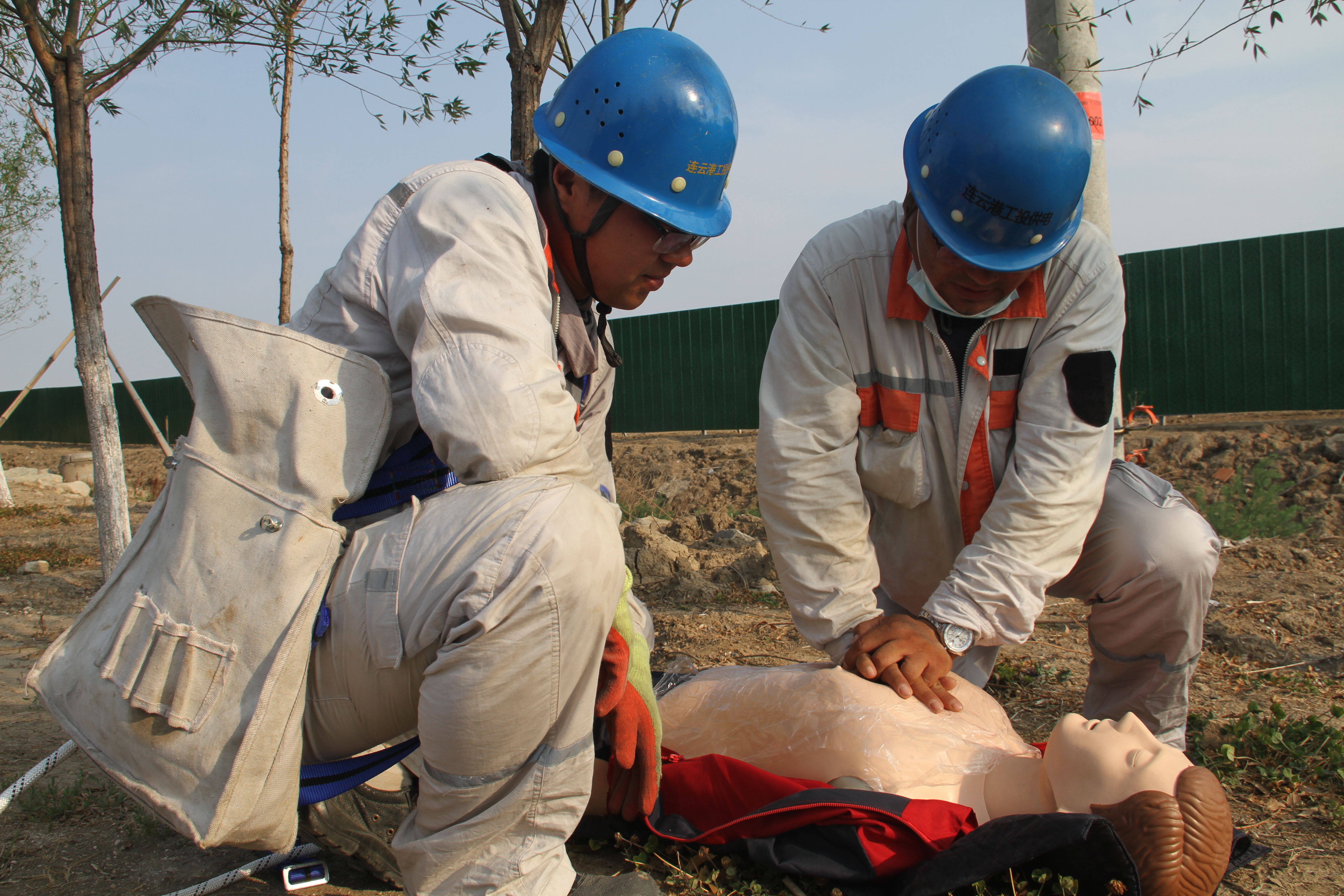本次活動,模擬臺北變電所10KV開太線創(chuàng)智街區(qū)支線2#桿AB接地短路,絕緣導線過負荷,燃燒滴落物引燃路邊雜草;1名線路搶修人員處置時發(fā)生高處墜落。承辦單位臺北供電所現(xiàn)場運行值班人員按操作票流程模擬倒閘操作、并宣讀流程,撥打公司值班室電話,搶險救援組接到電話,向總指揮匯報,總指揮下達搶修救援指令。隨即臺北供電所派出2名外線人員,進行干粉滅火器滅火模擬操作,搶修救援組立即奔赴現(xiàn)場,了解情況展開工作,采取初步救援措施;醫(yī)療救護小組人員配合所內(nèi)救護人員1名,同步領取物資?,F(xiàn)場模擬醫(yī)療救援,進行傷口消毒處理,無菌紗布綁扎演示,醫(yī)療救護組處理完畢,宣讀傷情另外嚴重情況,須120急救,啟動應急程序,模擬撥打120電話。模擬人員進行上桿裝備、勞保裝備穿戴演示,宣讀注意事項,并進行分支箱接頭、安裝、斷線緊線操作演練等?;顒迎h(huán)節(jié)結束后,安全管理部劉福勇宣告事故應急救援結束。