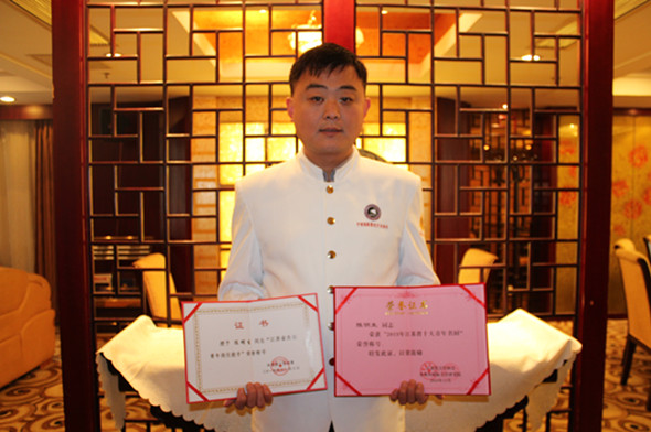 由共青團(tuán)江蘇省委員會(huì)、江蘇省烹飪協(xié)會(huì)聯(lián)合舉辦的2015年度“江蘇省十大青年名廚”評(píng)選活動(dòng)的結(jié)果,日前在蘇州開幕的江蘇省第二屆廚師節(jié)上揭曉,淮鹽大酒店廚師長陳明生被評(píng)為“江蘇省十大青年名廚”,他還同時(shí)被共青團(tuán)江蘇省授予“江蘇省青年崗位能手”稱號(hào)。此次活動(dòng)參評(píng)選手須是江蘇省烹飪大師或江蘇省烹飪名師以上,具有技師或高級(jí)技師技術(shù)職稱,且年齡在35周歲以下的青年廚師。由專家評(píng)審團(tuán)根據(jù)選手參加賽事獲獎(jiǎng)情況及為全省或地方等方面進(jìn)行綜合評(píng)估,最終評(píng)出江蘇省十大青年名廚。(陳明生)