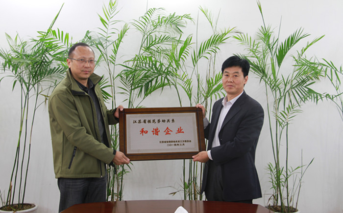 公司被授予“江蘇省模范勞動關(guān)系和諧企業(yè)”稱號