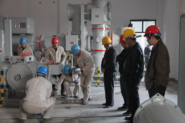 范總認真檢查了施工情況,聽取了工程部負責(zé)人的匯報,并對工程施工提出了希望和要求。范總指出,利?;ろ椖渴羌瘓F公司重點工程,110KV變電站更是重中之重;在土建未完成、進場條件不具備的情況下,我們?nèi)匀灰朔刂乩щy,保安全、搶時間、趕進度;要做好建設(shè)單位、土建施工單位、設(shè)備廠家的協(xié)調(diào)工作。范總強調(diào),利?;ぷ冸姽こ淌枪緩?0KV到110KV的一次歷史性跨越,要抓住機遇,以積累施工經(jīng)驗、鍛煉隊伍為主,實現(xiàn)施工技術(shù)、施工組織和施工管理大提升。要努力鉆研業(yè)務(wù),確保工程質(zhì)量一流,確保兩個月順利竣工,力爭提前完工,不拖利海化工項目整體竣工進度,為其早日開工建設(shè)、盡快投產(chǎn)達效提供可靠的電力保障。