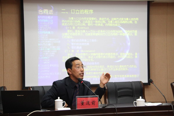 11月2日下午,公司在淮鹽大酒店召開黨委中心組學(xué)習(xí)《合同法》擴(kuò)大會(huì)議,邀請連云港師專董道前教授講課。公司領(lǐng)導(dǎo)班子全體成員、各基層單位領(lǐng)導(dǎo)班子成員、公司機(jī)關(guān)全體管理人員、天然居管理人員參加學(xué)習(xí)。(司宣)