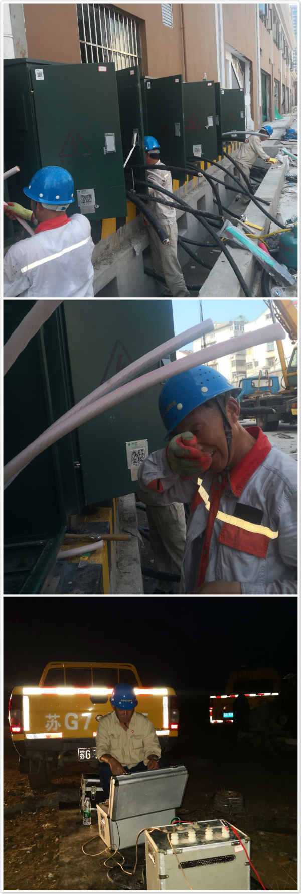 傍晚,剛剛干完活還沒吃飯的他們,又接到灌西和風風電項目電纜檢修任務,顧不上休息,立刻驅車前往80公里外的灌西施工現(xiàn)場,對電纜做實驗,找出故障點并進行更換。直至22點,才完成搶修任務。隨后,他們立即返回連云區(qū),準備第二天的工程施工。