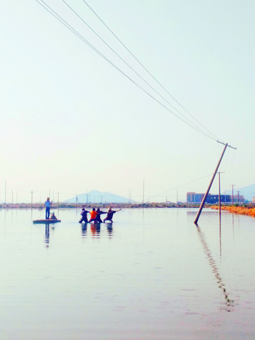 9月20日,該所組織人員進(jìn)行搶修。搶修人員經(jīng)過現(xiàn)場勘查后,發(fā)現(xiàn)隱患地點(diǎn)處于池塘中,搶修車輛等大型工器具無法到達(dá),只能靠人工搶修。在與魚塘養(yǎng)殖戶協(xié)商后,俞德春、楊祖加、楊新軍等搶修人員在對低壓線路采取停電、驗(yàn)電、掛接地等安全措施后,利用小木船來回穿梭、傳送材料,再跳入沒腿深的水里,將電桿扶正、加固。此時(shí),水面上的船、水中的人、拖拽的線路成了鏡頭中的新聞亮點(diǎn)。最后在經(jīng)過半個(gè)多小時(shí)的特色搶修后,成功恢復(fù)供電。(錢明華)