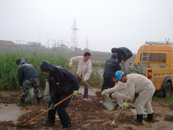 徐圩供電所接到防風(fēng)防暴指令后,立即組織全所人員進入應(yīng)急防汛狀態(tài)。