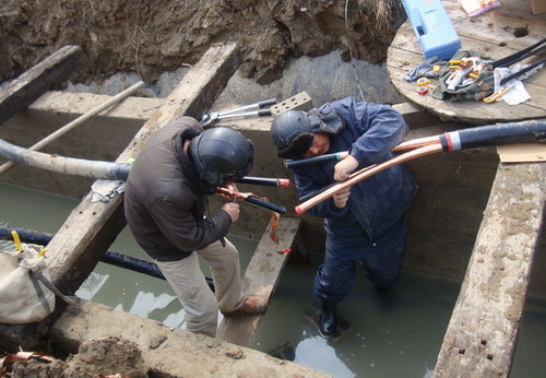 此項(xiàng)改造工程要求將原來的電桿高架改為地下電纜鋪設(shè),距離800米,雙線電纜,兩條出線,工程量130萬元,并在春節(jié)前結(jié)束,確保新醫(yī)藥產(chǎn)業(yè)區(qū)的美化和亮化。施工正值隆冬季節(jié),天氣寒冷,給施工帶來很大困難。職工們發(fā)揚(yáng)不怕苦、不怕累的精神,破開凍土層,理順冷縮的電纜,沿預(yù)設(shè)管道穿越。零下9度的氣溫,伴著呼呼的北風(fēng),刮在人的臉上象針剌,握著操作工具的手,有時(shí)不聽使喚,掉落地下,重又拾起。寒冷中,額頭沁出汗珠,身上透出熱氣,忽冷忽熱,使人身體適應(yīng)環(huán)境極不協(xié)調(diào),給人健康帶來不利。