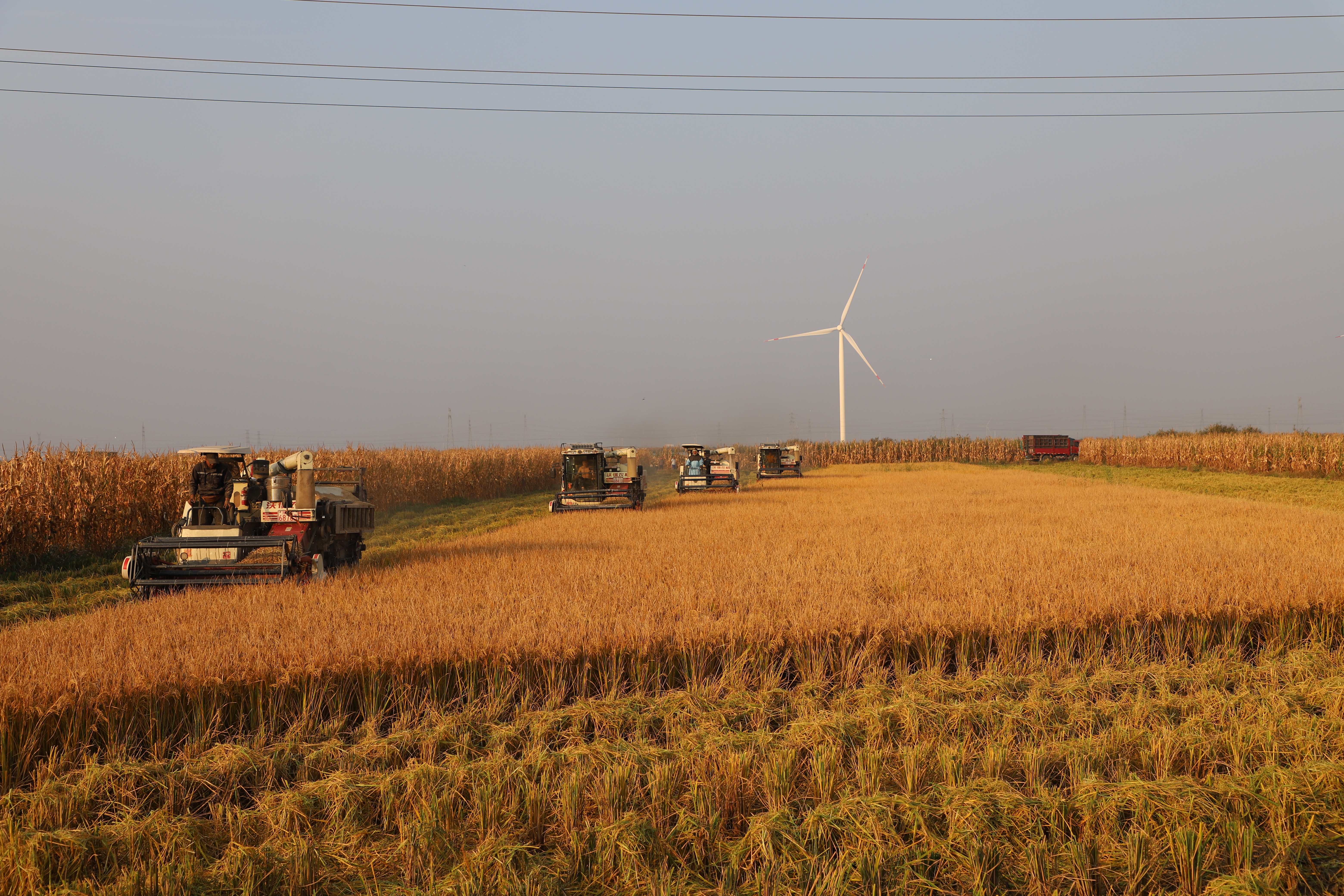 秋高氣爽,稻谷飄香。當(dāng)下,正是水稻收割的大忙季,田間稻浪翻滾,馬達(dá)轟鳴,一臺(tái)臺(tái)收割機(jī)在稻田里來(lái)回穿梭,割稻、脫穗、粉碎稻桿一氣呵成,一壟壟沉甸甸的稻谷很快便收獲歸倉(cāng),田間一派繁忙、豐收的景象。