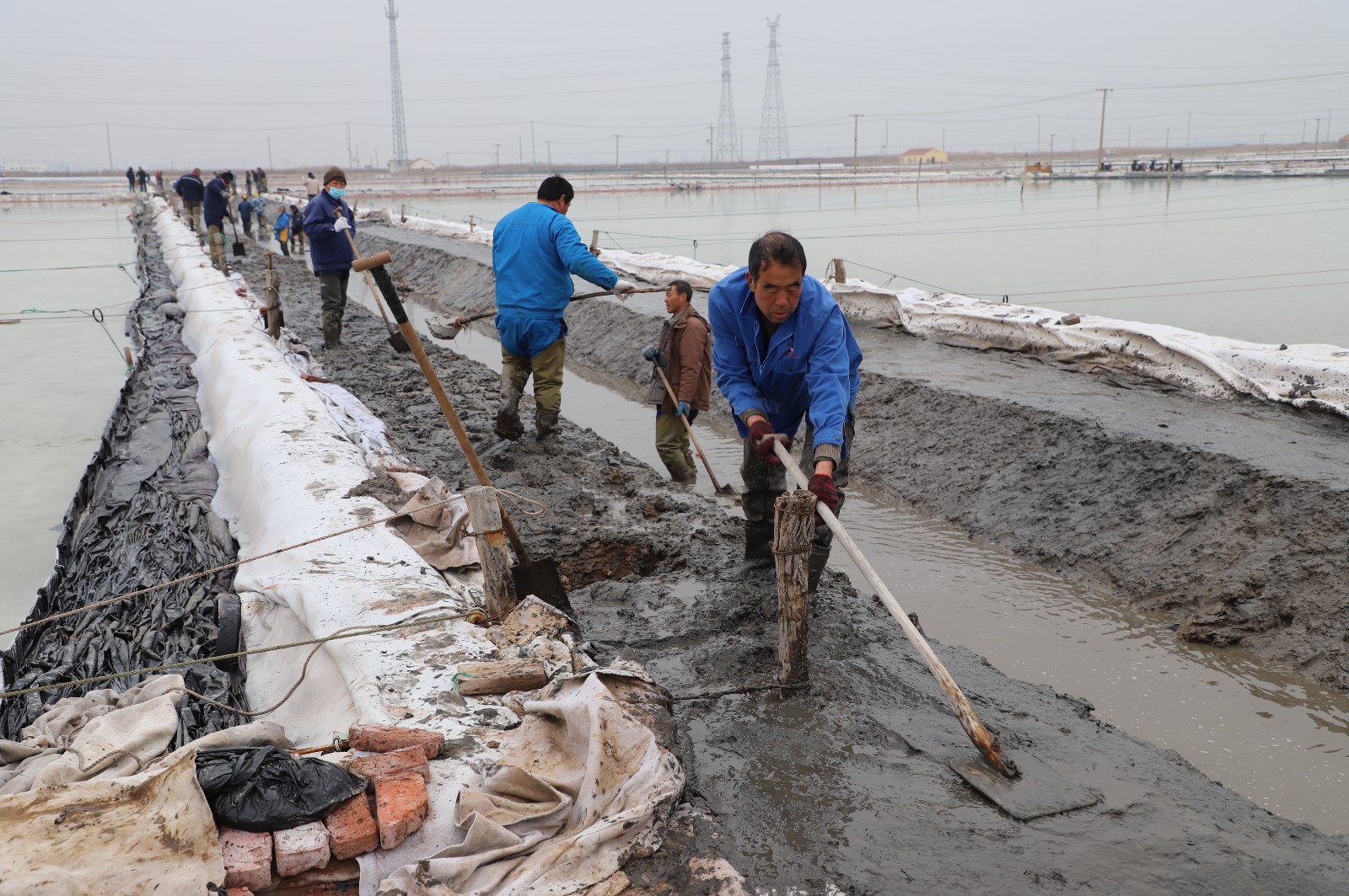 在新河制鹽分公司鹽田地頭的冬準會戰(zhàn)現(xiàn)場,人頭攢動,工人們正動作嫻熟的進行澆水、翻泥、踩實、做埝、整平……,鹽工們?nèi)幭冗M位,手腳不停揮鍬挖泥,呈現(xiàn)出你追我趕、比肩發(fā)力的勞動場景。一條條溝道改造、格堰修整等亮化灘場文明建設(shè)煥然一新,一幅“人勤春早”的美麗畫卷徐徐展開。