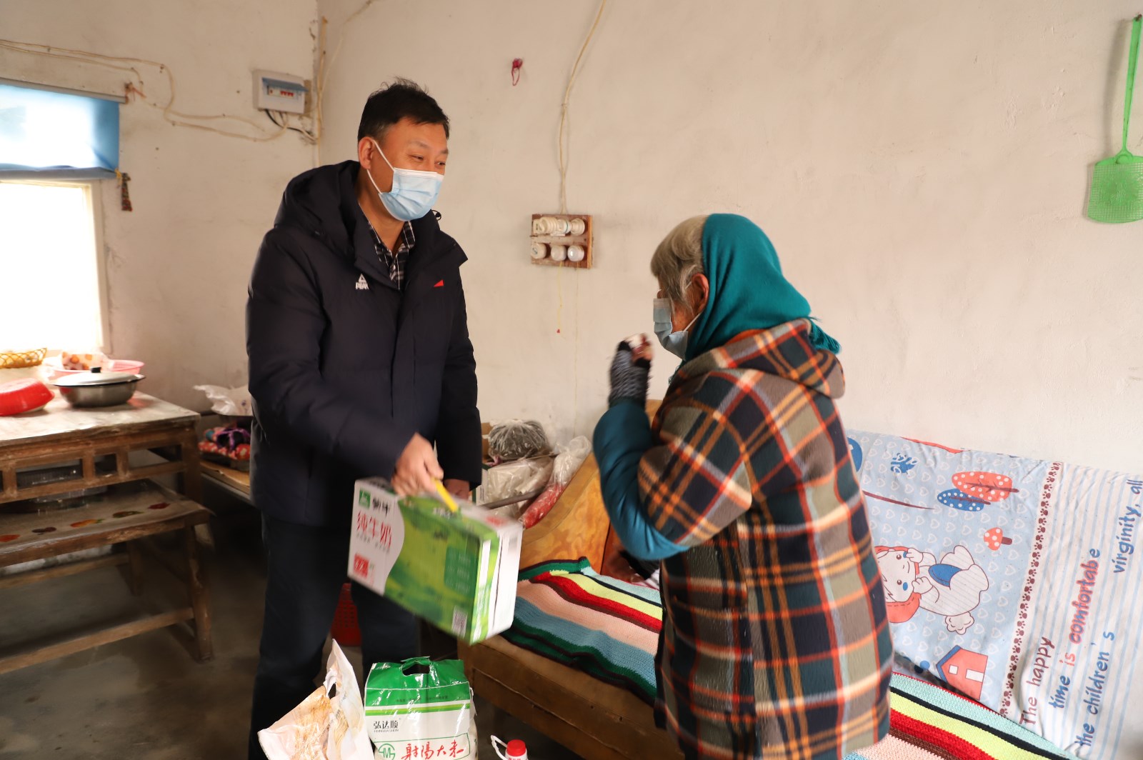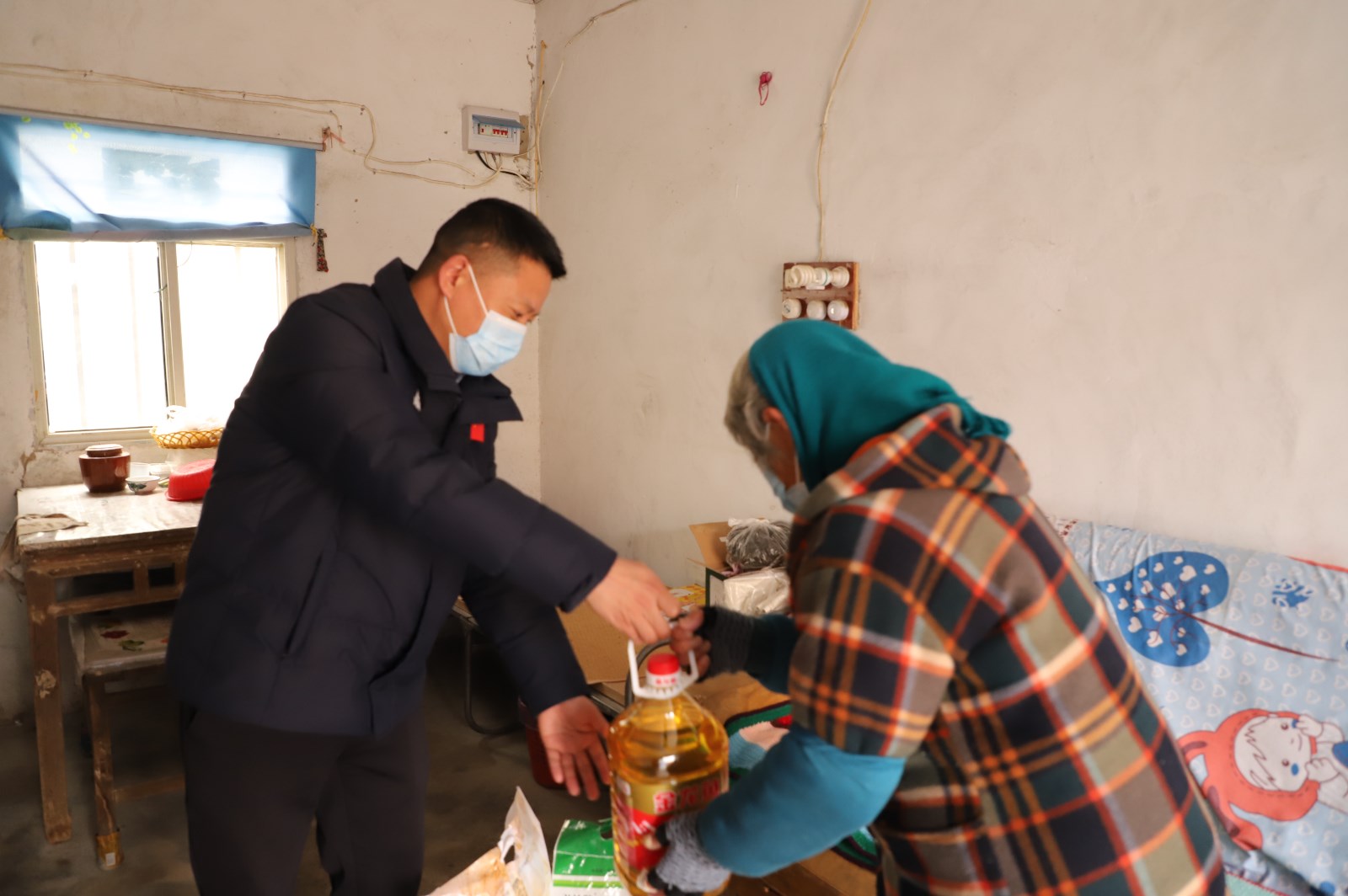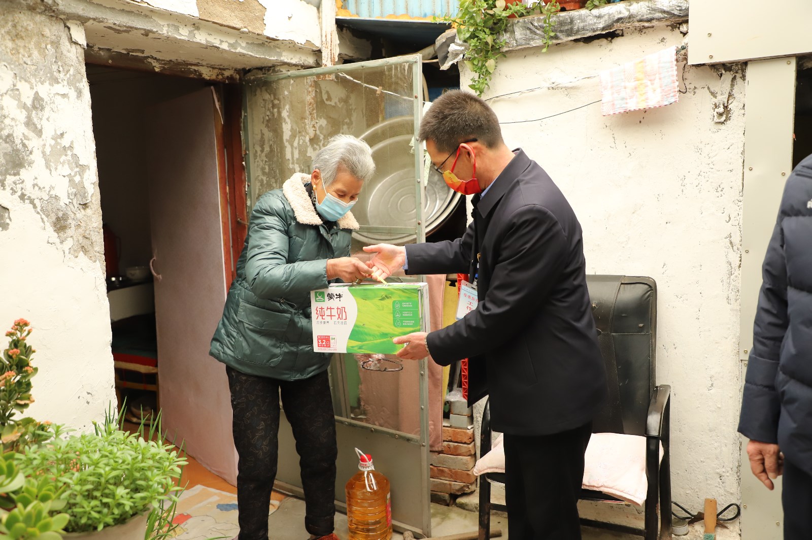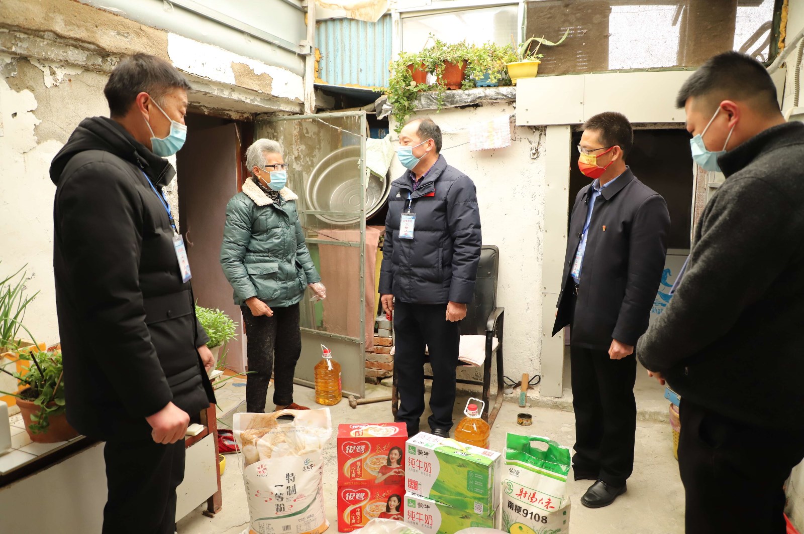 突如其來的疫情,帶給本就生活困難的“孤寡老人”更是“雪上加霜”。3月21日,投資公司黨委書記、董事長、總經(jīng)理李國文、常務(wù)副總經(jīng)理吳衛(wèi)平、總經(jīng)理助理潘二衛(wèi)、陳寬樓一行看望慰問兩位“孤寡老人”,為其送上豬肉、牛奶、大桶油、八寶粥等慰問品。