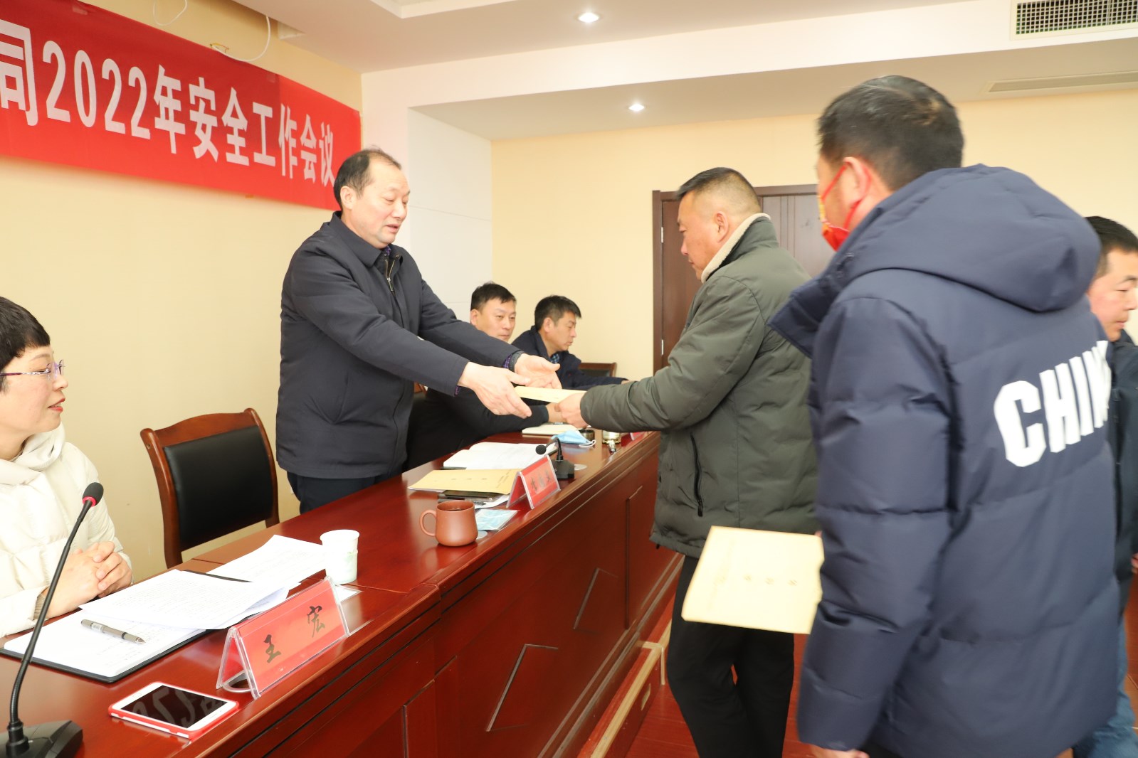 會上,對2021年度安全生產(chǎn)工作先進單位、先進部門、先進個人進行了表彰;李國文與各單位簽訂了2022年度《安全生產(chǎn)目標責(zé)任書》。(楊美娟)