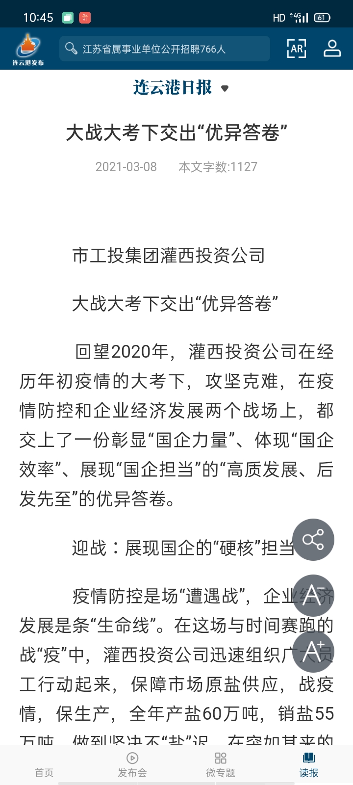 疫情防控是場“遭遇戰(zhàn)”,企業(yè)經(jīng)濟發(fā)展是條“生命線”。在這場與時間賽跑的戰(zhàn)“疫”中,灌西投資公司迅速組織廣大員工行動起來,保障市場原鹽供應(yīng),戰(zhàn)疫情,保生產(chǎn),全年產(chǎn)鹽60萬噸,銷鹽55萬噸,做到堅決不“鹽”遲。在突如其來的疫情大考面前,通過在“家門口”搭建招聘平臺,“點對點”推送用工信息,為應(yīng)聘人員“量身”定崗,招聘因疫情管控失業(yè)人員83人,同時為臨港產(chǎn)業(yè)區(qū)輸送轉(zhuǎn)崗職工70余人,讓因疫情管控還沒有出門打工的灌西社區(qū)本地人員在家門口上班,穩(wěn)住了復(fù)工復(fù)產(chǎn)的“陣腳”,以“硬核”擔(dān)當(dāng),護航企業(yè)經(jīng)濟復(fù)蘇。
