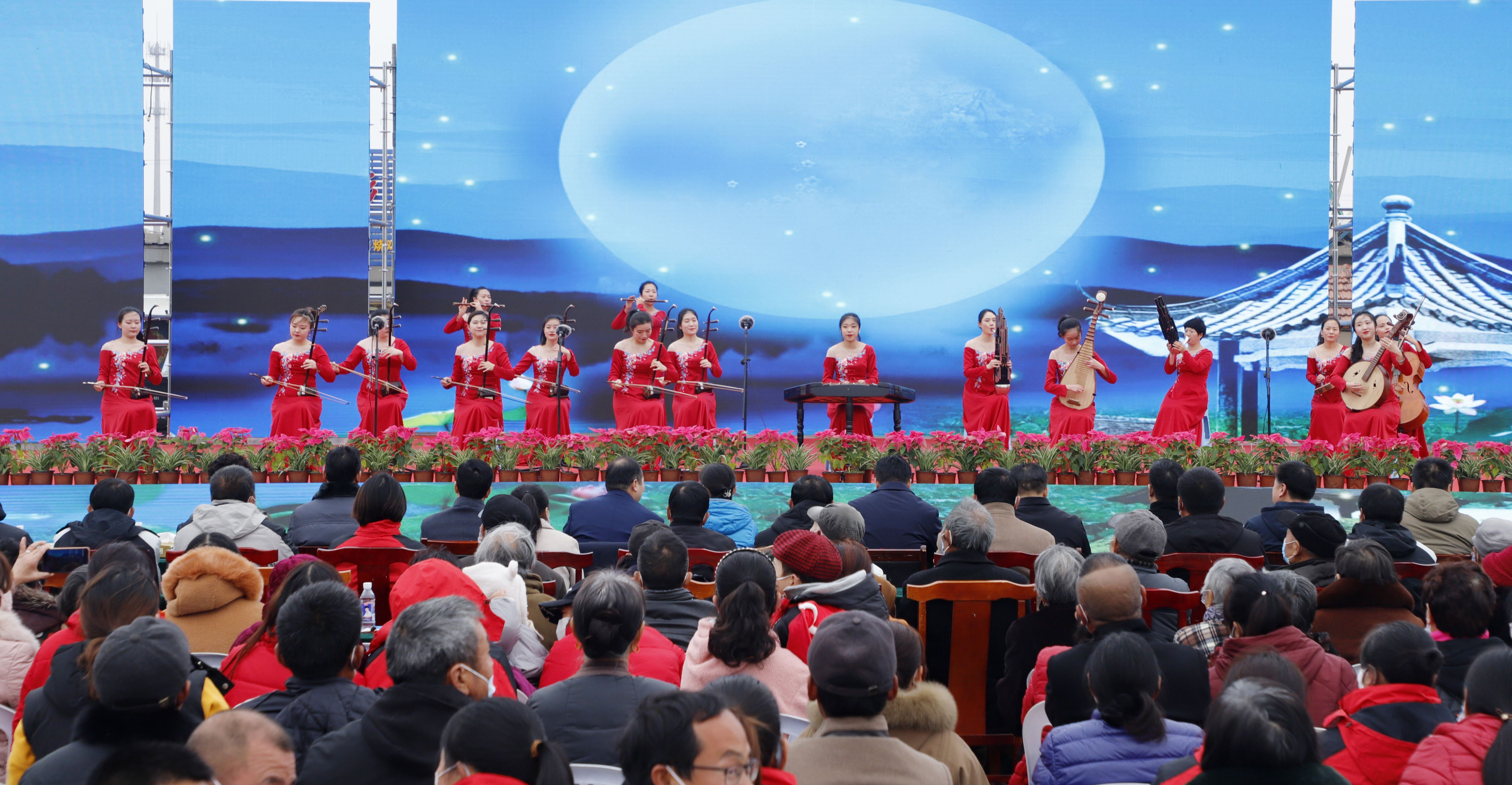 演出在精彩的合奏《水鄉(xiāng)情韻花好月圓》中拉開序幕,現(xiàn)場洋溢著歡樂的氣氛。健身操《向快樂出發(fā)》節(jié)奏歡快,動作利落灑脫,盡情釋放青春活力,獨舞《浣》旋律優(yōu)美,衣袖舞動,舞出溫婉柔美之態(tài)?,F(xiàn)代與古典、活力與韻味的巧妙結(jié)合,為現(xiàn)場觀眾帶來了一場視覺上的盛宴。男聲獨唱《我是真英雄》、二胡獨奏《太極琴俠》、舞蹈《我和我的祖國》,以及民樂合奏《樂見西游》,悅耳的人聲與悠遠的琴聲合鳴共振,營造出悠揚美妙的音樂劇場。相聲《歡聲笑語》和淮海戲《借靴》語言幽默風趣,劇情跌宕起伏,演員與臺下觀眾時不時的互動更是掀起了一波又一波的高潮。最終,精彩紛呈的演出在女聲獨唱《錦繡前程》中落下帷幕。