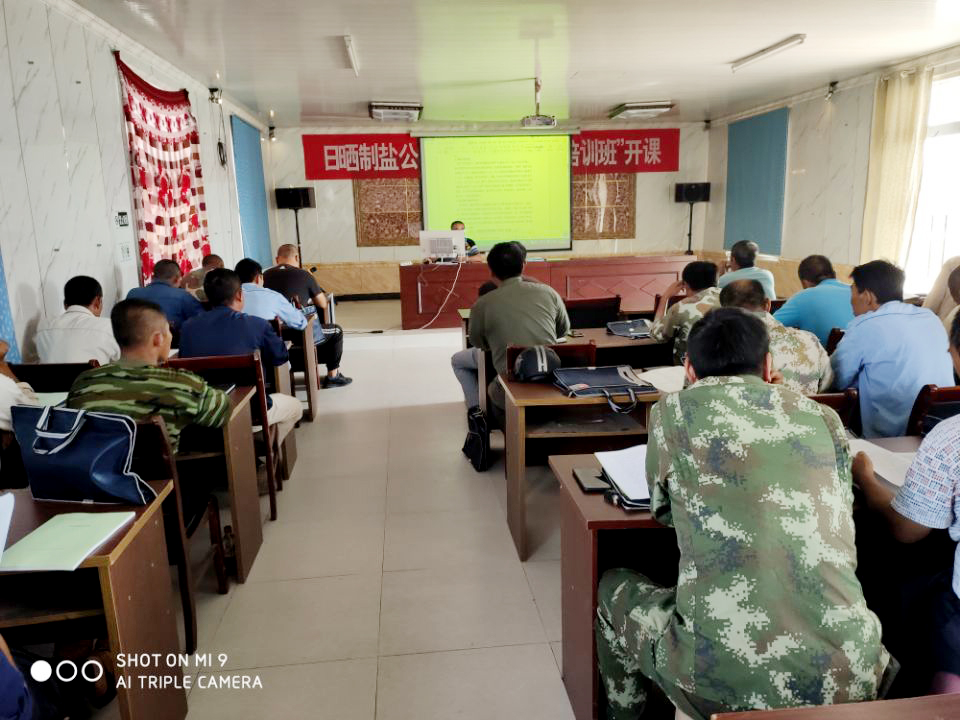 課上,王老師給大家分享了他在鹽業(yè)一線工作多年的寶貴經(jīng)驗(yàn),以《礦鹵曬鹽技術(shù)》為題,結(jié)合日常工作模式、方法,重點(diǎn)介紹了礦曬實(shí)操的工作標(biāo)準(zhǔn)、作業(yè)流程、除硫方式和方法。這場別開生面的交流分享課只是金藍(lán)領(lǐng)職工教育中心剛剛掛牌成立后的第一課。金藍(lán)領(lǐng)職工教育中心第一期培訓(xùn)還將開設(shè)氣象基礎(chǔ)知識、安全生產(chǎn)知識、班組管理等多門課程。