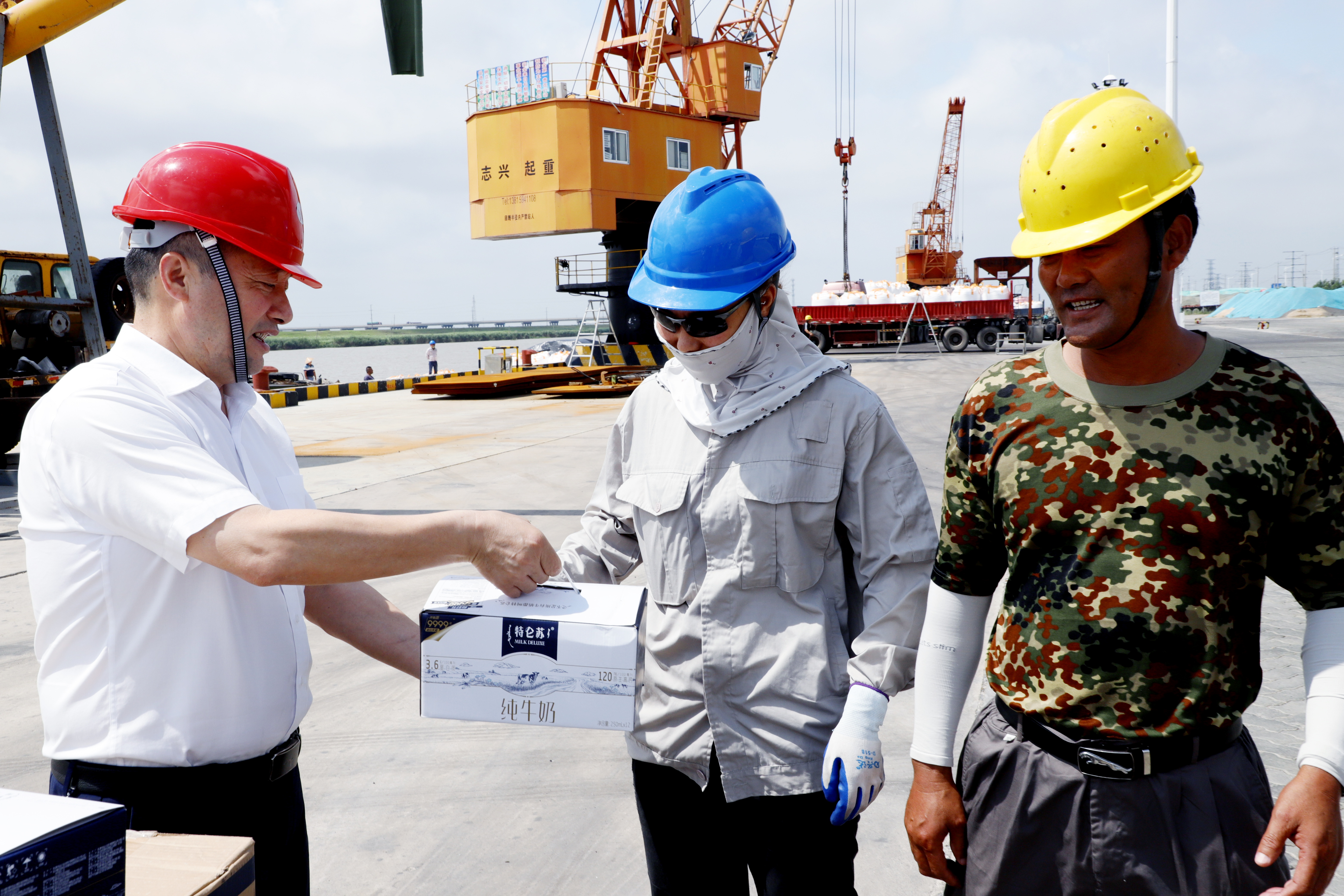 在集團(tuán)公司慰問(wèn)如火如荼開(kāi)展的同時(shí),投資公司領(lǐng)導(dǎo)也分別到碼頭、田頭,給堅(jiān)守崗位的同志們送去了問(wèn)候。