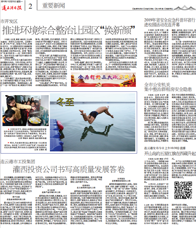 12月23日連云港日?qǐng)?bào)刊登灌西書寫高質(zhì)量發(fā)展答卷