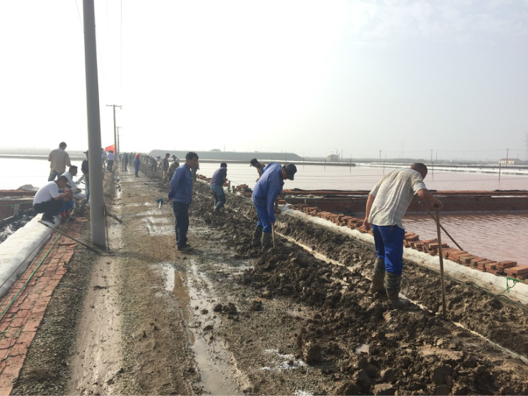 比賽開始前,生產(chǎn)服務(wù)公司經(jīng)理王緒前首先就天溝建設(shè)要求、評分標(biāo)準(zhǔn)等事項(xiàng)進(jìn)行了現(xiàn)場說明。7點(diǎn)20分,隨著裁判員的一聲令下,比賽正式開始。參賽選手們按照賽前抓鬮序號,迅速投入到比賽中。賽場上,每一組選手都分工明確,澆水、翻泥、踩實(shí)、做埝、整平一氣呵成,大家都表現(xiàn)的極為熟練,充分展示了參賽選手扎實(shí)的基本功。比賽中,三位裁判在比賽場地來回巡查,認(rèn)真記錄每一組參賽選手的勞動過程,力求做到公平、公正。9點(diǎn)20分,隨著最后一組選手的工作完成,比賽正式結(jié)束。隨即,三位裁判又根據(jù)比賽過程中的記錄情況結(jié)合最終工程質(zhì)量對每一參賽小組進(jìn)行綜合評分。最終,來自埒南制鹽分公司的章保衛(wèi)、高明成榮獲比賽第一名;江海兵、張春連以及尹步松、汪禮兵兩組選手榮獲第二名;新河制鹽分公司朱明、戴繼明,郁雷敏、李正軍,楊春旭、史春海三組選手榮獲第三名。