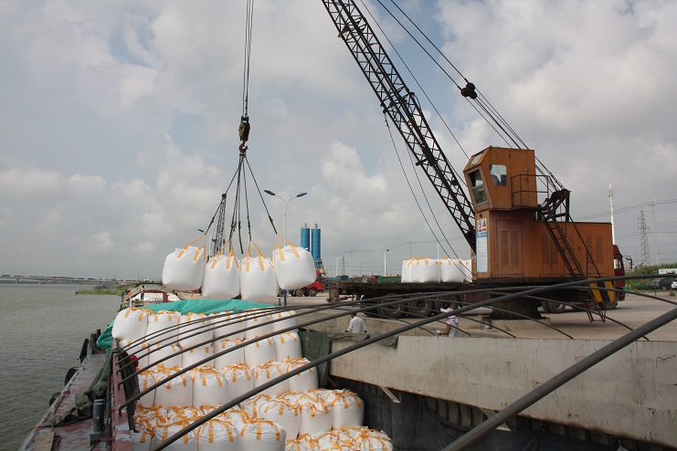 8月3日上午9點(diǎn)左右,當(dāng)筆者來到宵洋物流公司五灌河碼頭時,這里已經(jīng)到處是工人們忙碌的身影,吊機(jī)揮舞巨臂、車輛川流不息、現(xiàn)場管理者來回奔忙指揮、作業(yè)人員揮汗如雨緊張忙碌。