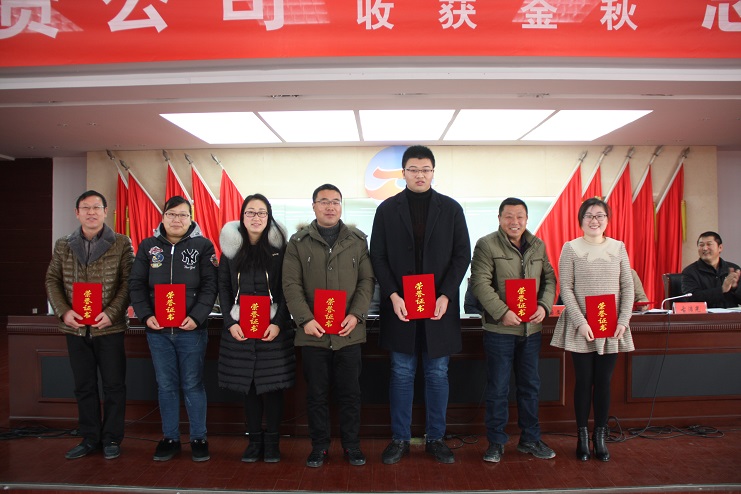 會上,黨委書記、董事長王德志做重要講話,黨委副書記、紀委書記、工會主席王保平宣讀表彰決定,副總經(jīng)理張學峰宣讀表彰人員名單,副總經(jīng)理古浩光對2016年度創(chuàng)新創(chuàng)優(yōu)工作進行總結并對2017年工作作出安排,副總經(jīng)理徐進軍對“收獲金秋大行動”工作進行總結。會議由黨委副書記、總經(jīng)理李國文主持。