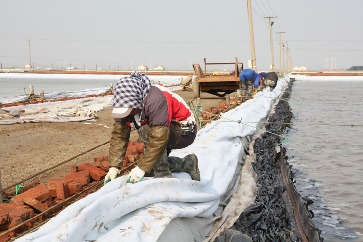 3月21日,在新河制鹽分公司八班的一期結(jié)晶區(qū),一片火熱景象,只見大家正在灘內(nèi)揮膀大干,挖泥的、和泥的、打堰的,配合密切,運作熟練,參加勞動的職工足有50余人。“為了加快食用原料海鹽基地建設(shè)進(jìn)度,今天,我們集中了7個組班的員工幫助八班維修下馬格格堰,爭取早日灌池生產(chǎn)。”正在工作現(xiàn)場安排工作的該公司經(jīng)理安樹林說道。