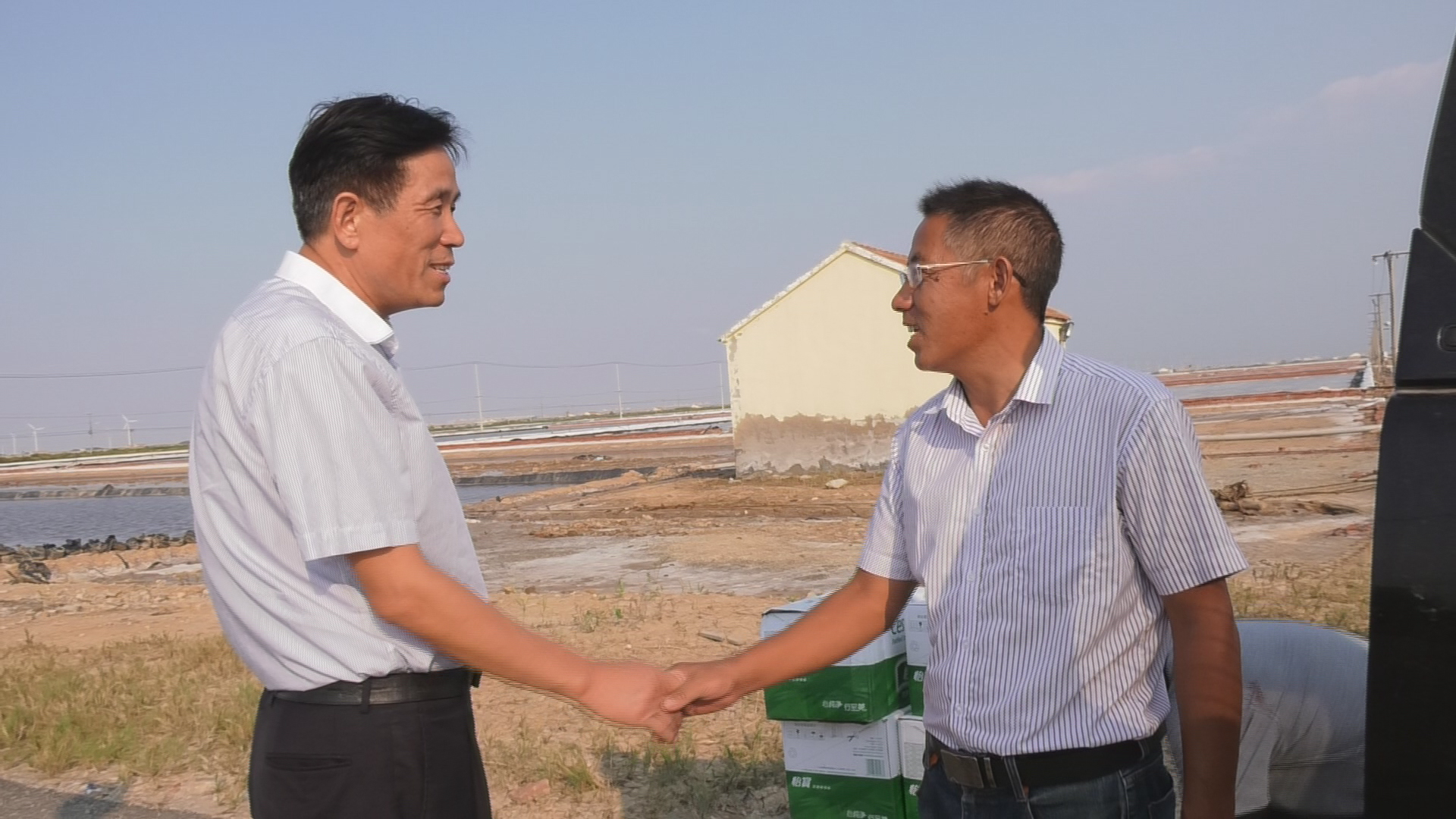 9月28日,西旺水產(chǎn)公司總經(jīng)理茆慶軍在投資公司副總經(jīng)理古浩光的陪同下,慰問日曬制鹽公司的扒鹽機組,向堅守扒鹽崗位辛勤工作的員工表示感謝。