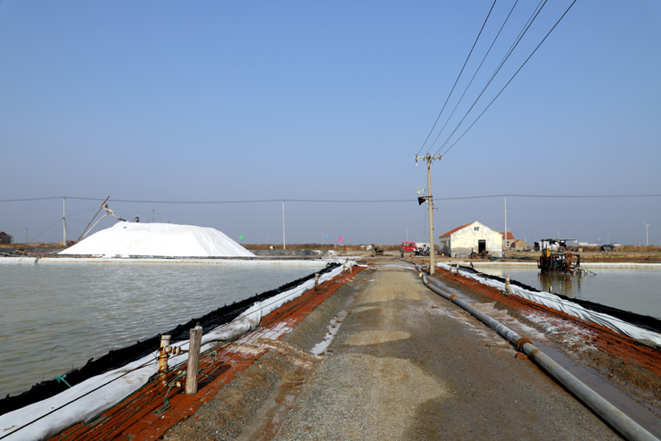 “轟隆隆——”的鹽泵轟鳴聲伴隨著扒鹽機(jī)馬達(dá)的嗡嗡聲,3月25日下午,日曬制鹽埒南制鹽分公司13班率先打響“春扒”戰(zhàn)役,萬畝鹽灘一片繁忙景象。
