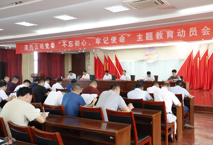 9月24日,灌西公司黨委召開“不忘初心、牢記使命”主題教育動員會議,投資公司黨委書記、董事長、總經(jīng)理李國文作動員講話,要求全公司上下用習近平新時代中國特色社會主義思想武裝頭腦,在以習近平同志為核心的黨中央堅強領導下,在集團公司黨委第四指導組的督促指導下,深入扎實地開展好主題教育,努力推動公司各業(yè)高質(zhì)高效發(fā)展,以優(yōu)異成績迎接中華人民共和國成立70周年。集團主題教育第四指導組組長王建松及全體成員到會指導。黨委副書記王宏主持會議。常務副總經(jīng)理古浩光等領導班子成員參加會議。