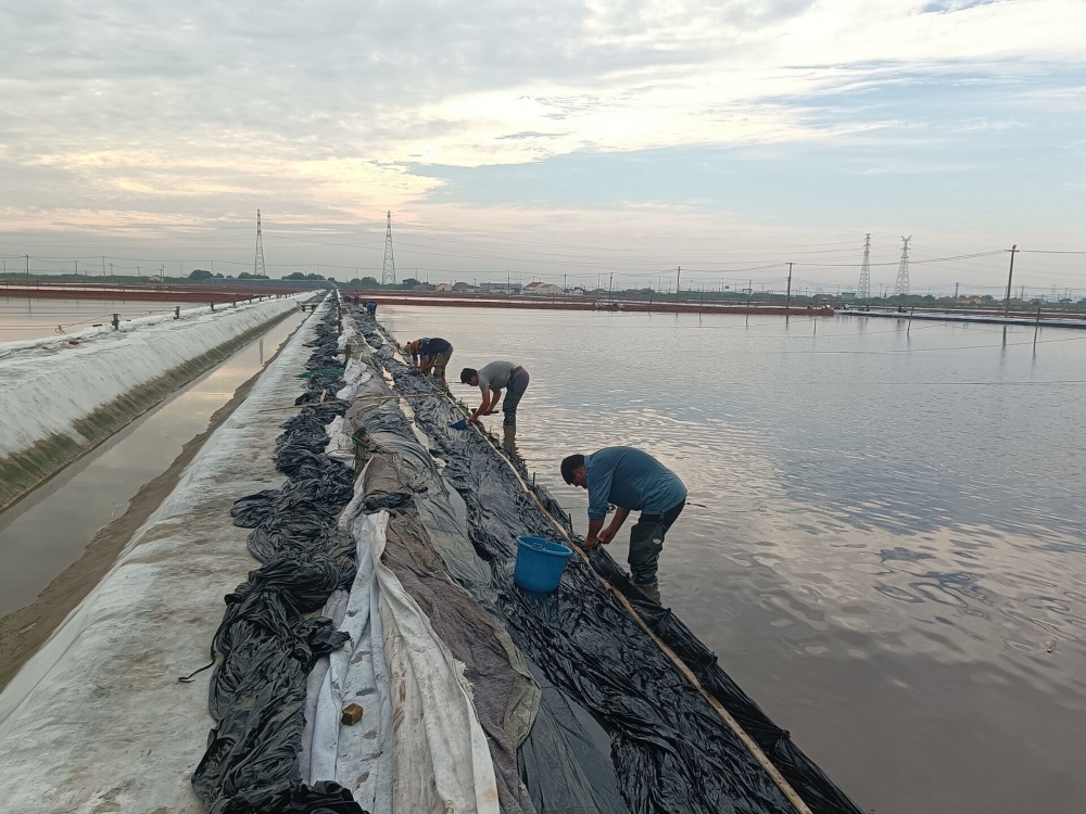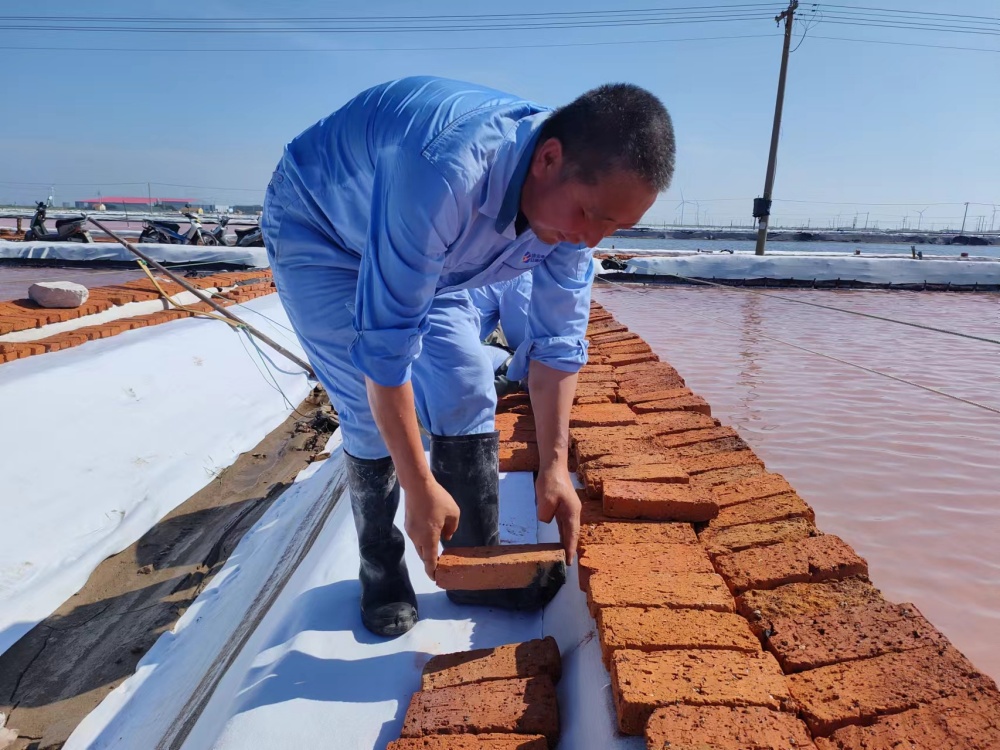 鏖戰(zhàn)酷暑,保目標。當(dāng)前,正是原鹽生產(chǎn)的關(guān)鍵時期,面對高溫酷暑的嚴重考驗,該公司干部職工迎難而上,戰(zhàn)高溫斗酷暑、搶晴天保生產(chǎn),全力投入到高溫生產(chǎn)、保鹽保鹵等工作中,及時修補塑布,加強塑布收放系統(tǒng)維護保養(yǎng),隨時做好拉塑布準備工作;管理人員以上率下,實施24小時現(xiàn)場值班機制,強化除硫制鹽工藝,抓實抓細原料鹵水、結(jié)晶池等源頭過程管控,確保全年產(chǎn)鹽60萬噸。驕陽烈日下,萬畝銀灘鹵水潺潺、“五彩斑斕”,產(chǎn)業(yè)工人在39℃高溫的戶外勞作,在熱氣蒸人的鹵水鹽田里,揮汗如雨,構(gòu)成了一幅最美的“鹵上芭蕾”。(許東彥)