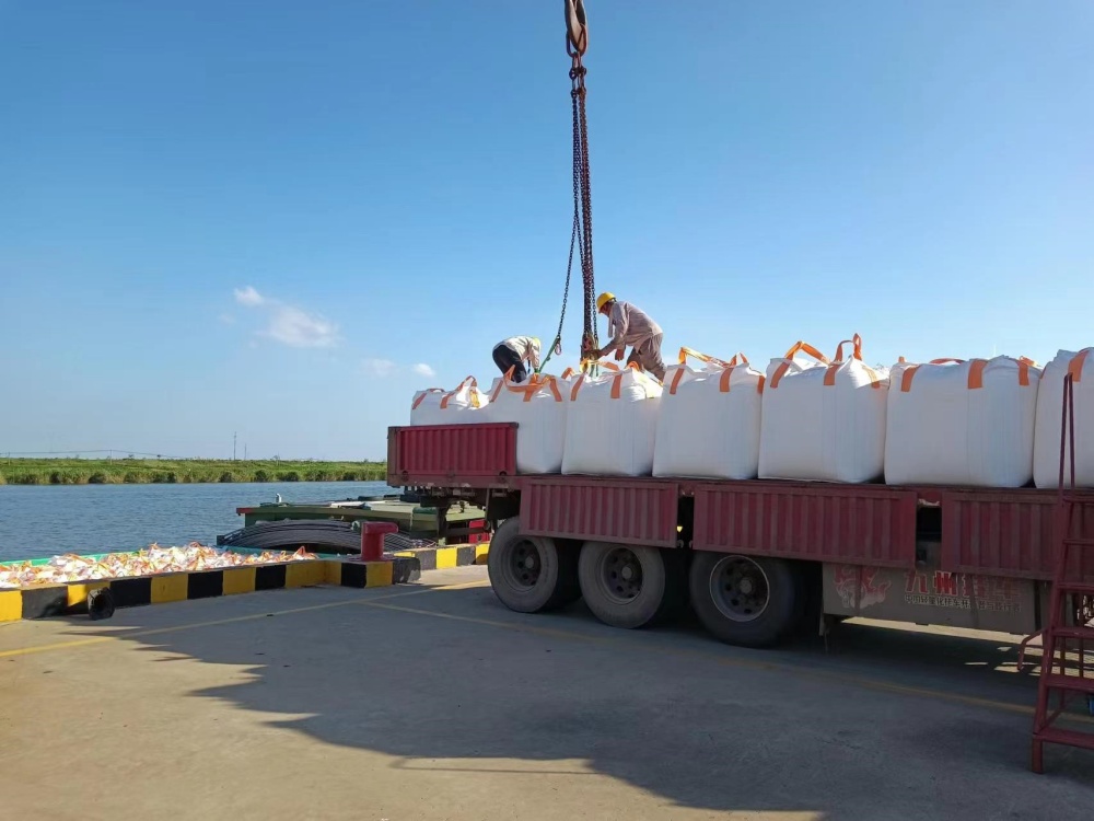 在火辣辣的太陽無情地照射下,一群勤勞的碼頭工人們正在調(diào)度著車輛和船只的進(jìn)出,確保噸袋運輸過程的順暢無阻。另外幾個工人正操縱著高大的吊機(jī),他們小心翼翼地裝卸著貨物,每一個動作都顯得格外謹(jǐn)慎。整個碼頭被一種熱烈而緊張的“高溫”氛圍所籠罩,仿佛連空氣都因為這份熱情而變得灼熱起來。