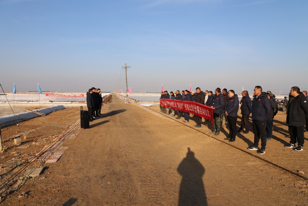 在新河制鹽分公司5班灘頭,總經(jīng)理吳衛(wèi)平作動(dòng)員講話,裁判長(zhǎng)沈玉波宣誓董事長(zhǎng)孫政權(quán)宣布“‘薪火灌筑 匠星西傳’師徒結(jié)對(duì)擂臺(tái)賽”正式開(kāi)始!