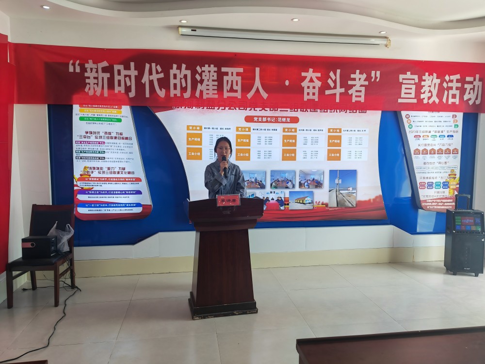 “‘鹽場(chǎng)精神’是苦咸熬出來的擔(dān)當(dāng),是鹵水泡出來的意志,是‘忠誠如鹽、純粹若晶、奉獻(xiàn)似海’的堅(jiān)守,是‘腳踏實(shí)地、精益求精、求真務(wù)實(shí)’的沉淀。”“當(dāng)破曉的晨光剛剛?cè)玖聋}田的阡陌,鹽田深處已躍動(dòng)著一個(gè)被工友們親切喚作“星星”的身影,那枚別在他胸前的軍徽如同不滅的星芒,在鹵水浸潤(rùn)的土地上扎下深根。”“十六年財(cái)務(wù)生涯,別部長(zhǎng)以女性特有的堅(jiān)韌與細(xì)膩,演繹著新時(shí)代財(cái)務(wù)人的擔(dān)當(dāng)故事?!薄?/span>二十年如一日,尹加根用鐵鍬和汗水在48間旱廁間刻下自己的名字?!薄爸汽}一線向來被視為‘男人的戰(zhàn)場(chǎng)’,但楊中華偏要在這里闖出一片天地。銀灘無聲,見證著一朵玫瑰在鹽堿地上頑強(qiáng)綻放?!?/span>在“新時(shí)代的灌西人·奮斗者”的宣教活動(dòng)現(xiàn)場(chǎng),宣講員以真摯的文字、動(dòng)人的語言,帶我們走進(jìn)了新時(shí)代灌西人的奮斗故事!