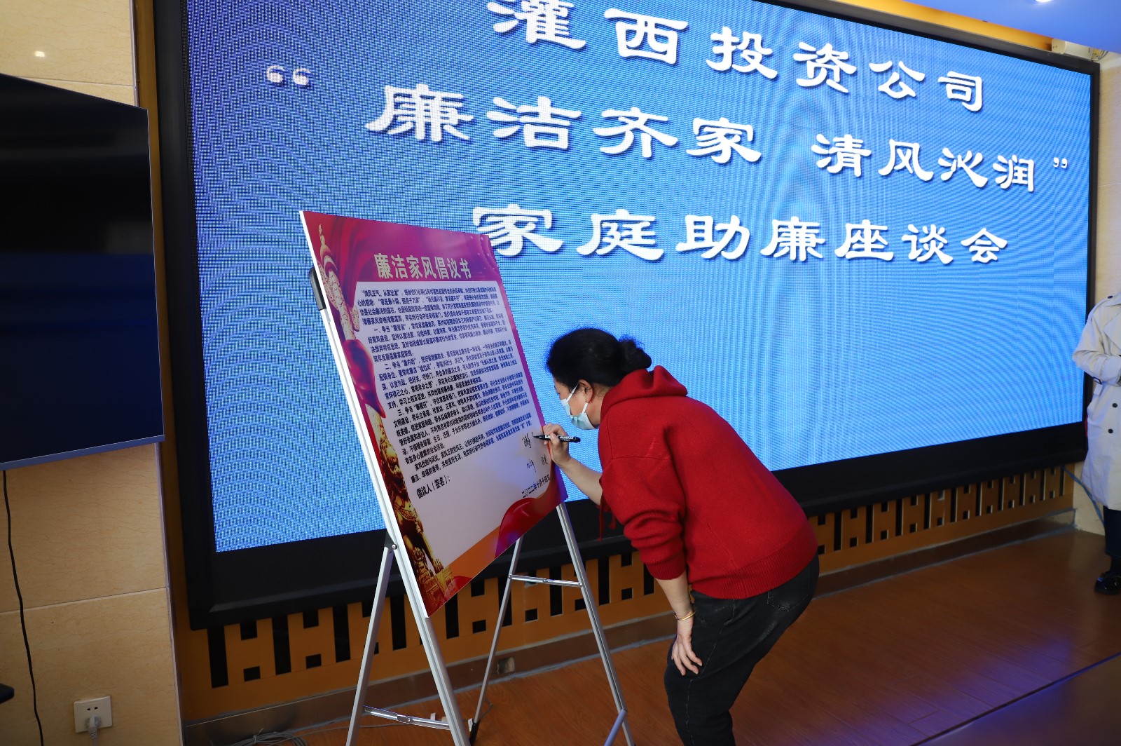 廉內(nèi)助代表們一行先是參觀廉潔文化展廳,觀看《遠(yuǎn)離家庭腐敗》警示教育片,隨后共同簽訂《廉潔家風(fēng)倡議書》,贈送樹清廉家風(fēng)廉潔文化書籍,接著廉內(nèi)助代表們結(jié)合自己的切身體會,對家人辛勤工作表示理解和支持,還圍繞“如何樹立好家風(fēng),把好廉潔關(guān)”進(jìn)行了交流探討。大家紛紛表示,現(xiàn)在的安穩(wěn)、幸福日子來之不易,在今后家庭生活中將一如既往把好“家門”、樹好家風(fēng),為“枕邊人”開展工作提供有力的廉潔保障。