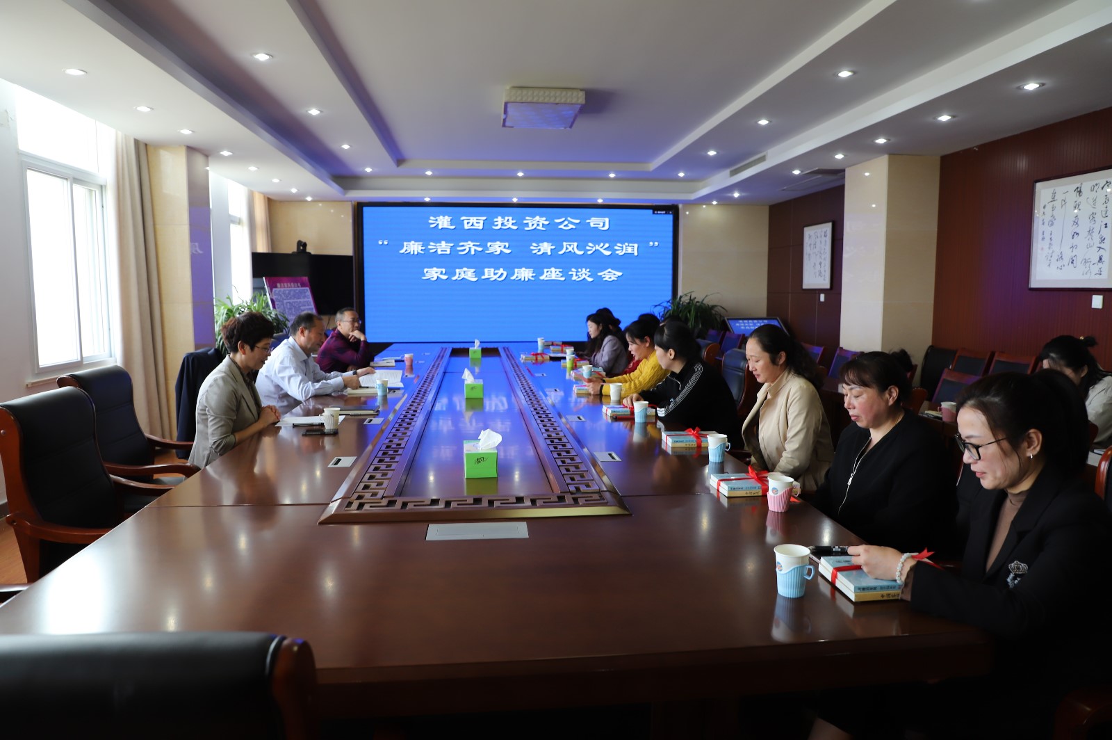 為充分發(fā)揮黨員干部家屬“廉內(nèi)助”的作用,做好“八小時(shí)”外的廉政教育,倡導(dǎo)廣大黨員干部家屬把好家庭廉政關(guān)。1013上午,灌西投資公司紀(jì)委召開“廉潔齊家 清風(fēng)沁潤”為主題的家庭助廉活動,公司領(lǐng)導(dǎo)干部家屬代表一起拉家常、話正氣、樹家風(fēng),共同守好家庭廉潔防線。