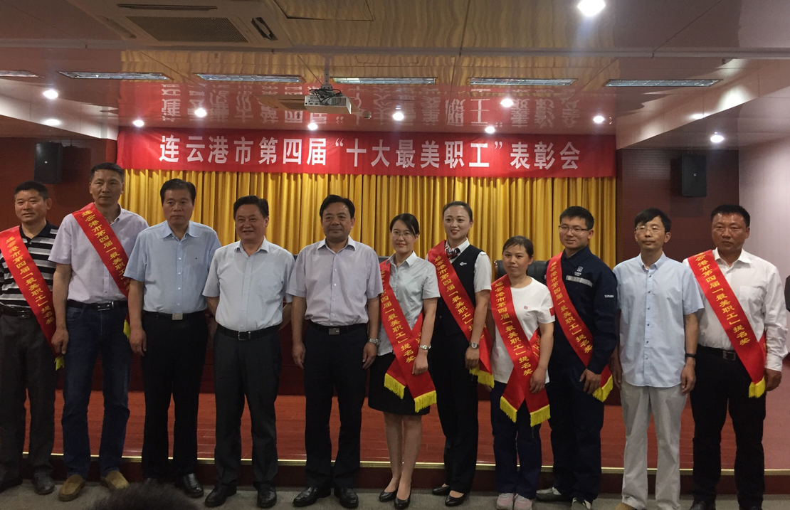 近日,在連云港市第四屆港城“十大最美職工”表彰會(huì)上,日曬制鹽新河分公司八班班長(zhǎng)祝星星榮獲“十大最美職工”提名獎(jiǎng)。在表彰會(huì)上,市總工會(huì)主席鄭平、丁維杰書(shū)記、宣傳部副部長(zhǎng)李超領(lǐng)導(dǎo)與獲獎(jiǎng)人員一起合影留念。