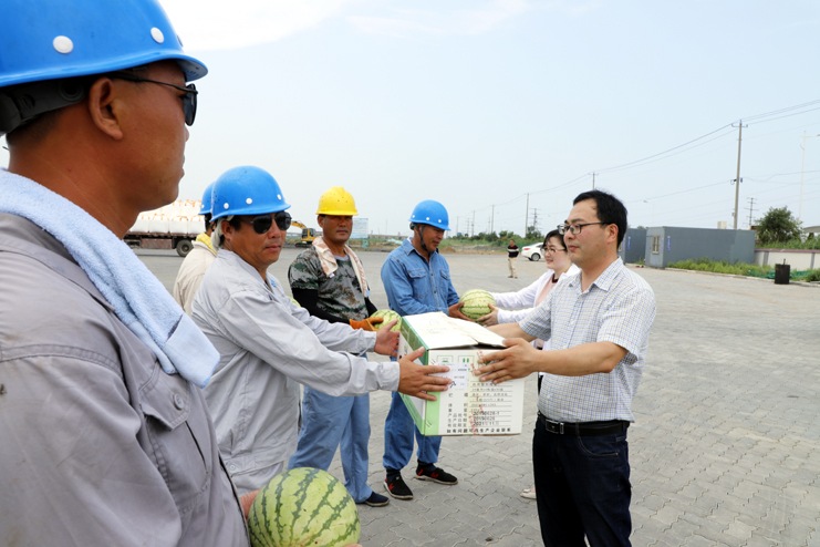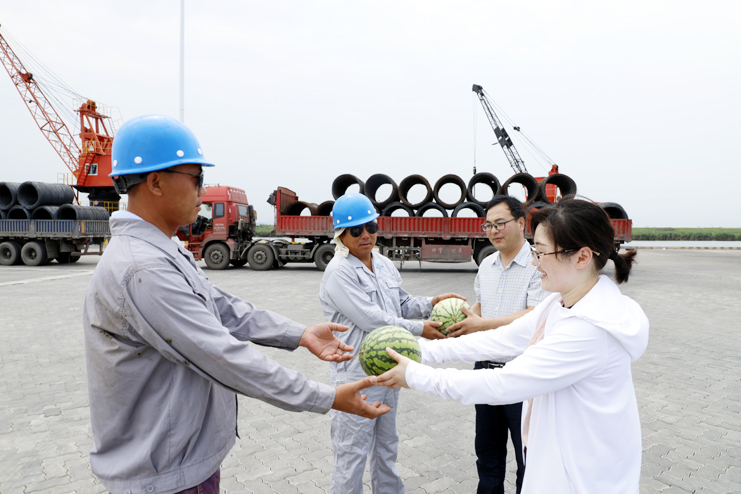 灌西工會(huì)為堅(jiān)守在烈日下的碼頭工人“送清涼”