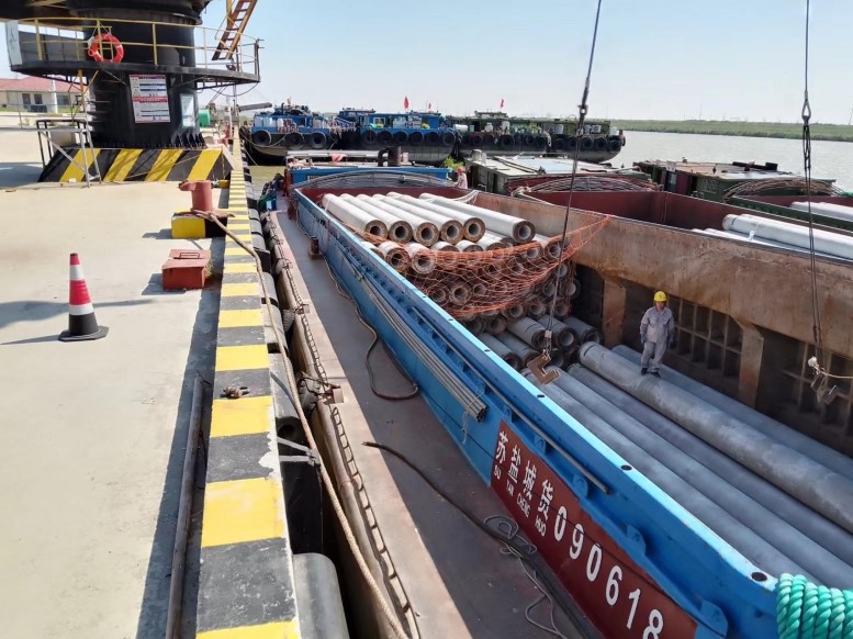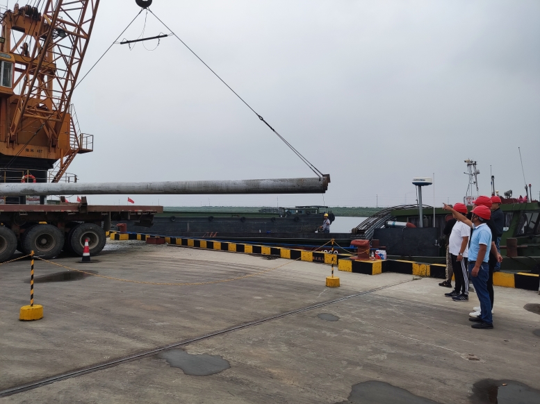 管樁的裝卸和別的貨物相比,安全風(fēng)險更大,所以在裝卸管樁時,宵洋管理人員要深入現(xiàn)場,緊盯嚴(yán)管,對管樁的重要環(huán)節(jié),一邊講解注意事項,一邊手勢指揮,塔吊師傅小心翼翼,嫻熟地拔弄著操作手把,通過塔吊搬運(yùn),五噸的管樁在半空中調(diào)試到最佳位置,最后平穩(wěn)著落,從船艙吊起的管樁,運(yùn)送到貨車上,艙內(nèi)的三名工人,齊心協(xié)力,配合得相當(dāng)默契,掛在吊機(jī)上的管樁,看似簡單的一鉤一掛,不僅要調(diào)整管樁擺放角度,還要檢查鋼繩是否牢固,為了安全起見,在船艙和管樁之間,又架起了一層防護(hù)網(wǎng),防止掛鉤工摔倒跌落,采取一系列防范措施,確保萬無一失。經(jīng)過一天的忙碌,望著遠(yuǎn)去車輛,每當(dāng)圓滿完成當(dāng)天卸管樁任務(wù)后,工人們憨厚老實臉上,露出了滿意的微笑,這就是我們宵洋工人搬卸管樁情景的真實寫照!(宵洋物流公司胡秀同)