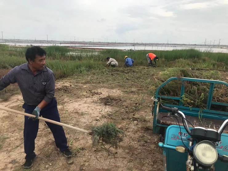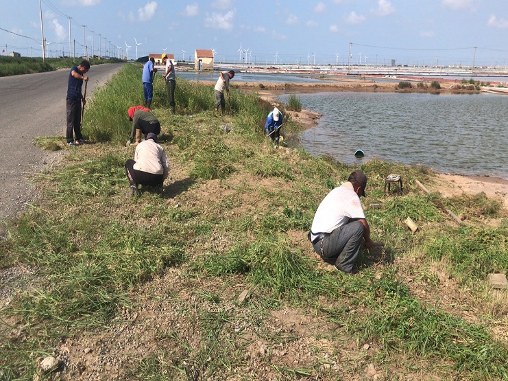 埒南制鹽分公司開(kāi)展灘場(chǎng)文明建設(shè),對(duì)各班灘場(chǎng)文明進(jìn)行集體整頓。完成塑料布整理、清理溝道、值班室整理、鹵臺(tái)雜物清除等工作,主要是清理灘內(nèi)雜物雜草,對(duì)值班室、大小機(jī)房附近雜草進(jìn)行清理。并對(duì)扒鹽機(jī)械進(jìn)行統(tǒng)一保養(yǎng)、擺放,為即將到來(lái)的秋扒奠定基礎(chǔ)。圖為工人正為灘內(nèi)雜草進(jìn)行清理。(孟然)