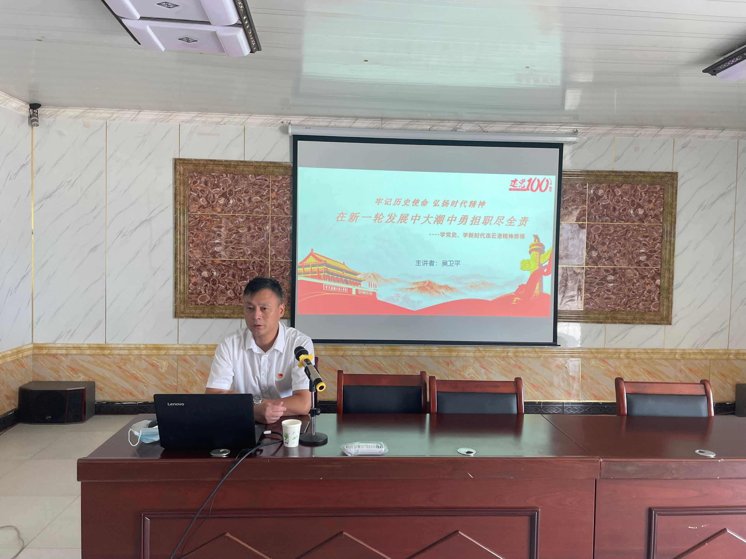 吳衛(wèi)平以《在新一輪發(fā)展中大潮中勇?lián)煟M全責---學黨史,學新時代連云港精神感悟》為黨課主題,圍繞四個章節(jié)展開講述:第一章、學黨史,銘記革命先輩的無私奉獻精神,提高政治意識,第二章、學講話,堅信中國特色社會主義發(fā)展方向,提升政治站位,第三章、學時代,堅定新時代連云港精神必勝信心,踐行高質量發(fā)展,第四章、學本領,提升理論指導實踐能力素養(yǎng),樹立奮斗決心。