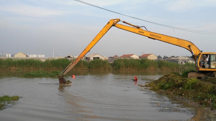 為不影響淡水魚塘正常供水,機械服務公司急西旺公司所急,認真組織人力,對西旺東泵站機頭草檔進行更新及水草清理工作。一是及時到現(xiàn)場察看,制定制作、安裝方案,二是組織技術人員進行加工制作,能放棄休息日,加班加點,從備料到制作,一天時間完成,三是人機結合,適時掌握天氣預報,搶時間安裝。從5月29日制作到安裝結束,僅用2天時間。期間勞模王緒華能率先垂范,職工肖華勝等能不怕臟和累,穿好救生衣下水作業(yè)。安全指揮員劉洪波能做好現(xiàn)場指揮,確保了此工程安全、高效完工。體現(xiàn)了機械人的戰(zhàn)斗力。為正常開機揚水提供了保證。(上圖為安裝、除草現(xiàn)場)