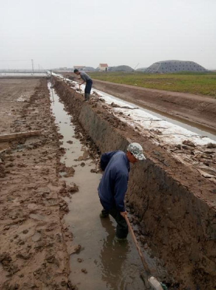 根據(jù)公司生產(chǎn)部門統(tǒng)一要求,在每個生產(chǎn)班組新灌一塊結(jié)晶池,埒南制鹽分公司精心布署,細(xì)化安排,嚴(yán)控時間節(jié)點(diǎn),抓頭、抓早、抓緊,對生產(chǎn)班組新上的格塊堅持做到現(xiàn)場指導(dǎo),跟蹤督察,不符合灌池質(zhì)量標(biāo)準(zhǔn)的堅決不準(zhǔn)上馬。(圖為職工在修整結(jié)晶池堰)莊忠明