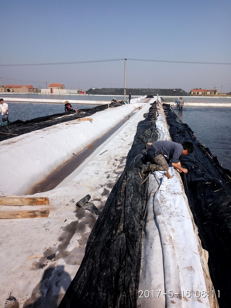 實業(yè)公司制鹽分公司,海鹽基地大力推進灘場文明建設(shè)。為了保護鹵水不受損失,確保到手的成果,分公司對海鹽基地三個班組灘地的導(dǎo)管、口門進行檢查,嚴(yán)防跑冒滴漏現(xiàn)象出現(xiàn)。近日公司對二班到期破損嚴(yán)重的塑布進行更換,確保班組做好制鹵工作。(實業(yè)公司)