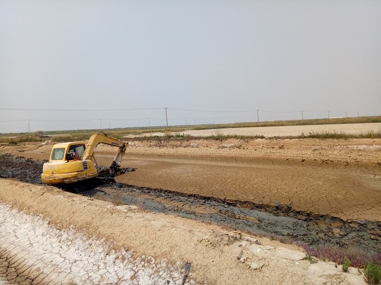 目前,實(shí)業(yè)公司制鹽分公司、海鹽基地一班正在進(jìn)行清淤擴(kuò)容改造工程。