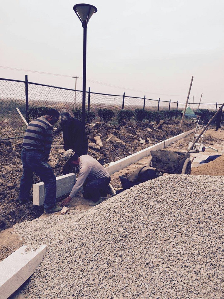 南翼綠化公司承接的小區(qū)綠化工程,目前已進入路沿石鋪設施工中。