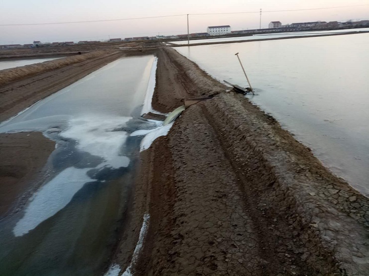 近日,氣溫低至零下八、九度,實業(yè)公司柴門區(qū)海鹽基地三個班組進行冰下抽咸制鹵。三個班組之前已做好了抽咸的準備工作。班組長清早六點鐘頂著低溫冰凍天氣抽咸:一班抽咸鹵水八千方,二班三千方,三班二千五百方,共計一萬三千五百方。最后做好凍化水排淡工作。(實業(yè)公司)