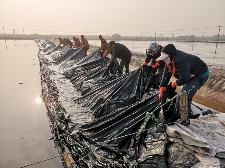 進(jìn)入5月下旬,天氣時陰時晴,新河制鹽分公司積極組織勞動力,要求各班組做到扒鹽和塑布安裝相結(jié)合、相推進(jìn),截至當(dāng)前,180塊計(jì)5400公畝塑布已經(jīng)安裝完畢,此項(xiàng)工作的完成對降低鹵耗,減少跑冒滴漏起著決定性作用。(程龍)