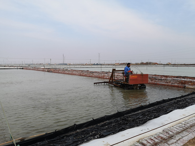 破碴勤、破碴透,才能保證原鹽生產(chǎn)的旺產(chǎn)增收。進(jìn)入2月下旬,雖然受新冠肺炎疫情影響,相關(guān)工作較往年延遲,但新河制鹽分公司科學(xué)組織,嚴(yán)密安排,根據(jù)春季扒鹽節(jié)奏,合理調(diào)配破碴機(jī)械,率先啟動原鹽破碴工作。在十班破茬碴現(xiàn)場,班組結(jié)晶池內(nèi)熱火朝天,只見一臺臺破碴機(jī)快速來回穿梭,正在對擬春扒格塊進(jìn)行機(jī)械破碴。勞模創(chuàng)新工作室成員、班長匡洪忠查看破碴的鹽池板后,臉上露出滿意的微笑,他說:“通過近幾年的小改小革,現(xiàn)在機(jī)械破碴格塊只要一個小時(shí)就全部到位,而且質(zhì)量比人工破碴好,大大地減輕了職工勞動負(fù)荷。”