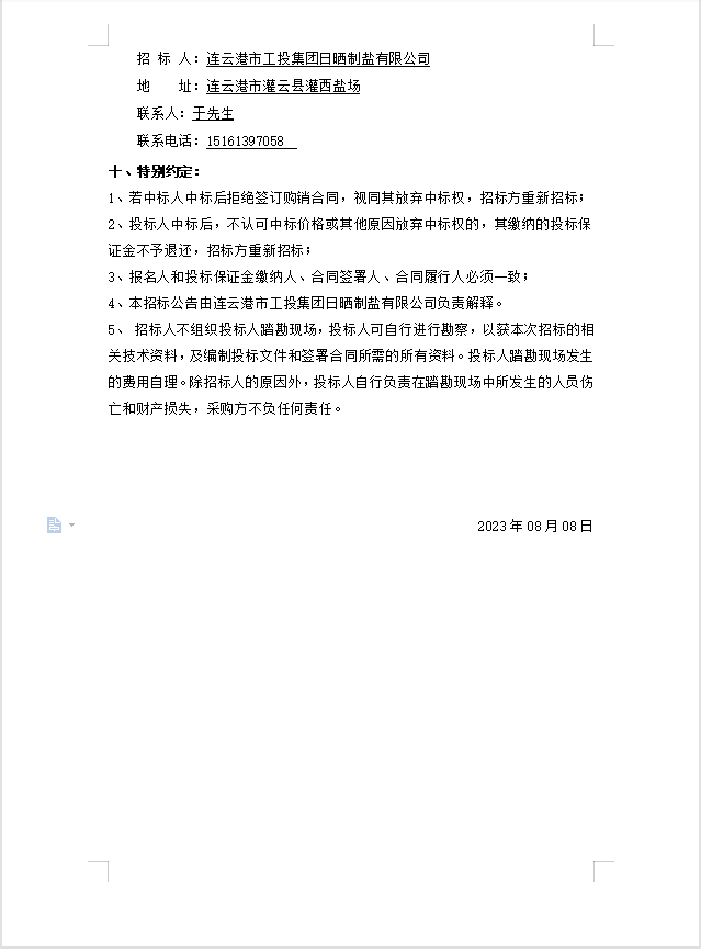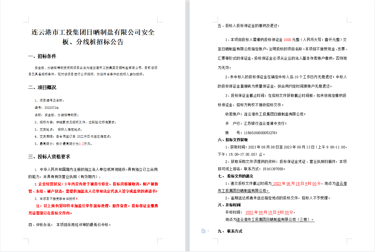 連云港市工投集團(tuán)日曬制鹽有限公司安全板、分線樁招標(biāo)公告