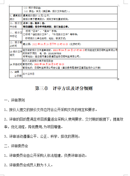 連云港市工投集團日曬制鹽有限公司鋼絲繩采購項目