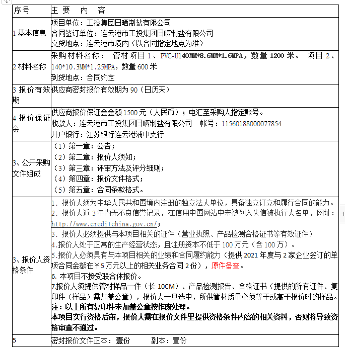 連云港市工投集團(tuán)日曬制鹽有限公司管道采購項(xiàng)目